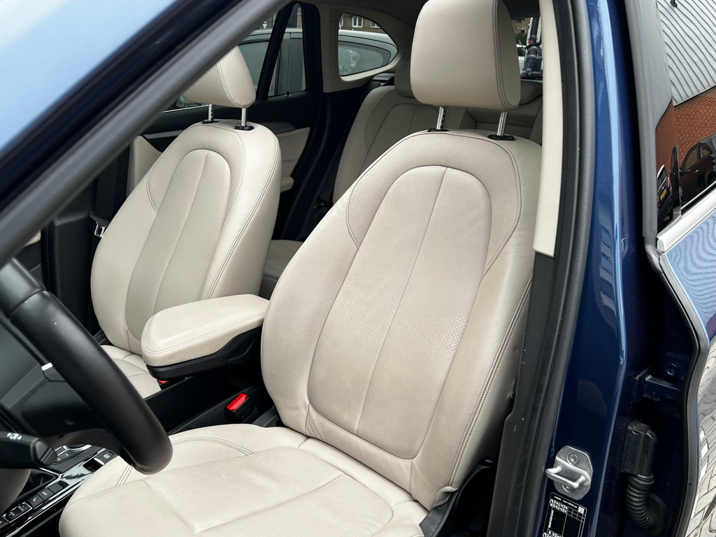 Het interieur straalt luxe uit dankzij het lederen interieur en het royale panoramisch glazen dak, dat zorgt voor een prachtige lichtinval en een ruimtelijk gevoel in de auto. De 19 inch lichtmetalen velgen geven de X1 bovendien een krachtige en dynamische uitstraling.