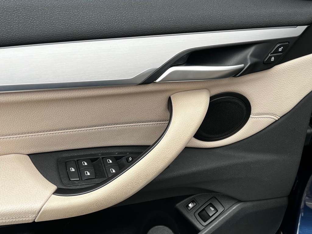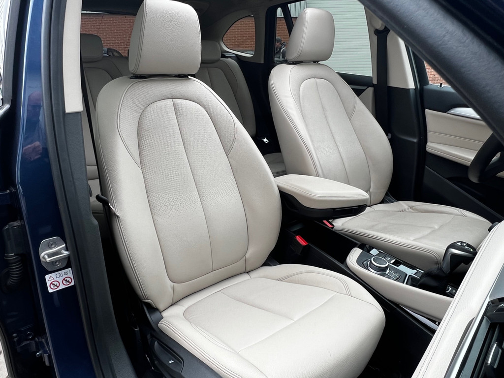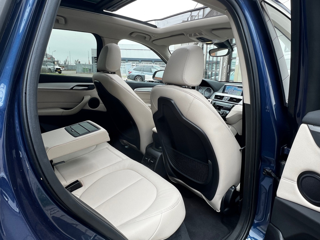 Het interieur straalt luxe uit dankzij het lederen interieur en het royale panoramisch glazen dak, dat zorgt voor een prachtige lichtinval en een ruimtelijk gevoel in de auto. De 19 inch lichtmetalen velgen geven de X1 bovendien een krachtige en dynamische uitstraling.